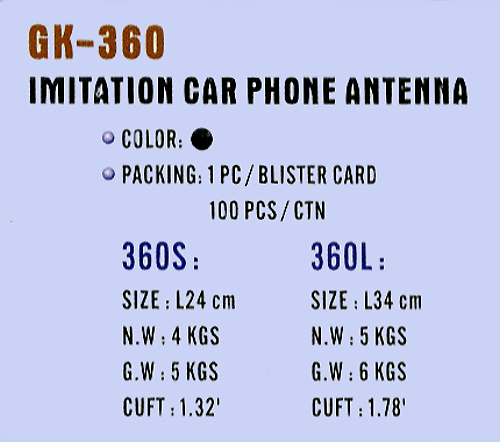 Car Antennas Country of Origin:Taiwan Competitive Advantages:Well and High Quality Control ,Prompt Delivery ,New Product ,Competitive Prices ,In a Variety of Design ,ODM Accepted ,OEM Accepted Sales Method:Manufacture Payment Terms:T/T,L/C